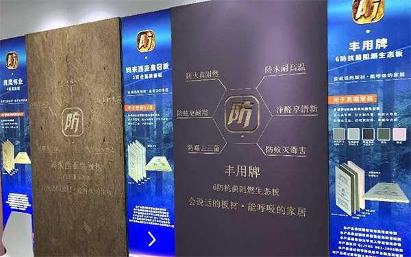 驚艷亮相“豐用牌-6防阻燃生態(tài)板”;豐用牌-6防阻燃生態(tài)板是一款集防火、防水、抗菌防霉、防白蟻、防蟲、凈醛6大功能于一體的功能型阻燃板材。最令人驚嘆的是,這款板材不僅功能用途多,其售價(jià)也令人欣喜,性價(jià)比得到了業(yè)內(nèi)人士的連連贊嘆。
